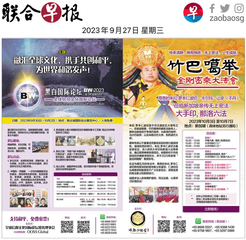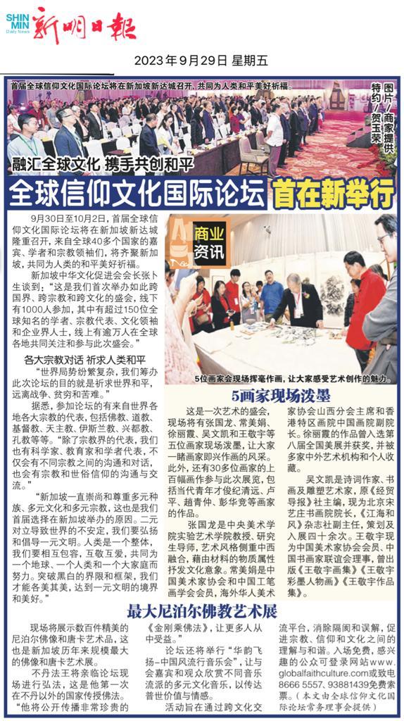 “This is the first time we have organized such a cross-border, cross-religious, and cross-cultural event,” said Zhang Bu Sheng, President of the Chinese Cultural Promotion Society of Singapore. There will be 1,000 participants in person, including over 150 globally renowned scholars, religious representatives, cultural leaders, and entrepreneurs. Furthermore, approximately ten thousand people from around the world will be participating in this event online.”